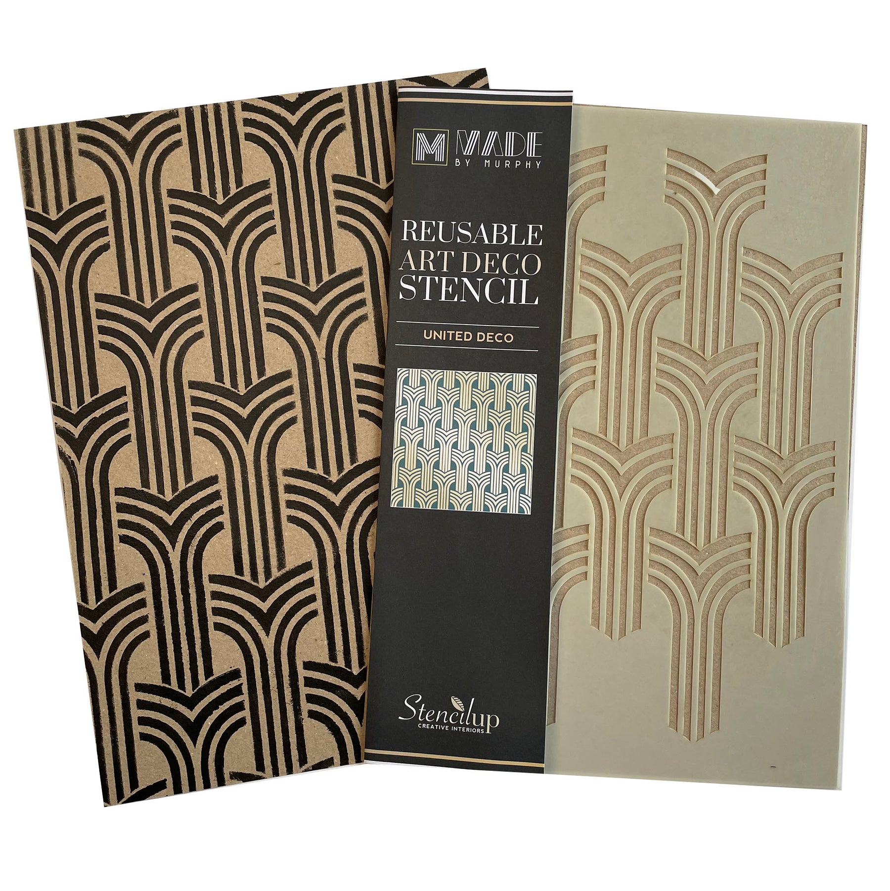 The self adhesive stencils have a low-tack peel-off backing that eliminates the need for spray adhesive or masking tape. All parts of the stencil are held in place minimising bleeding and resulting in sharper lines. The backing is waterproof so can be cleaned, and once dry will become tacky one again.