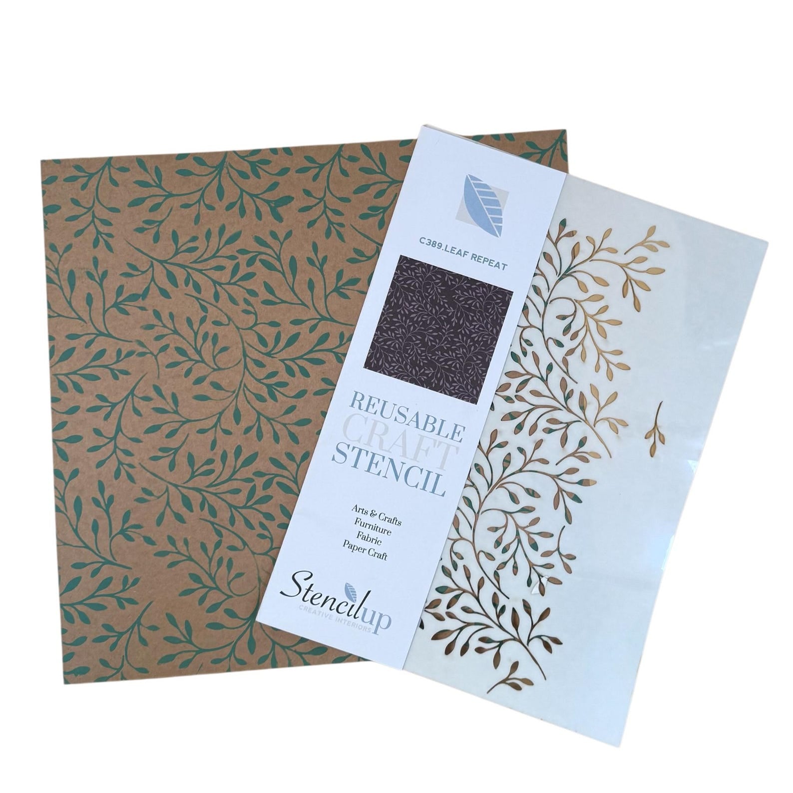 This stencil design is inspired by the Arts and Crafts movement, with flowing, interlacing branches and stylised leaves that echo the timeless patterns associated with William Morris. The repeating foliage forms a richly decorative surface, balancing natural rhythm with careful structure and harmony.