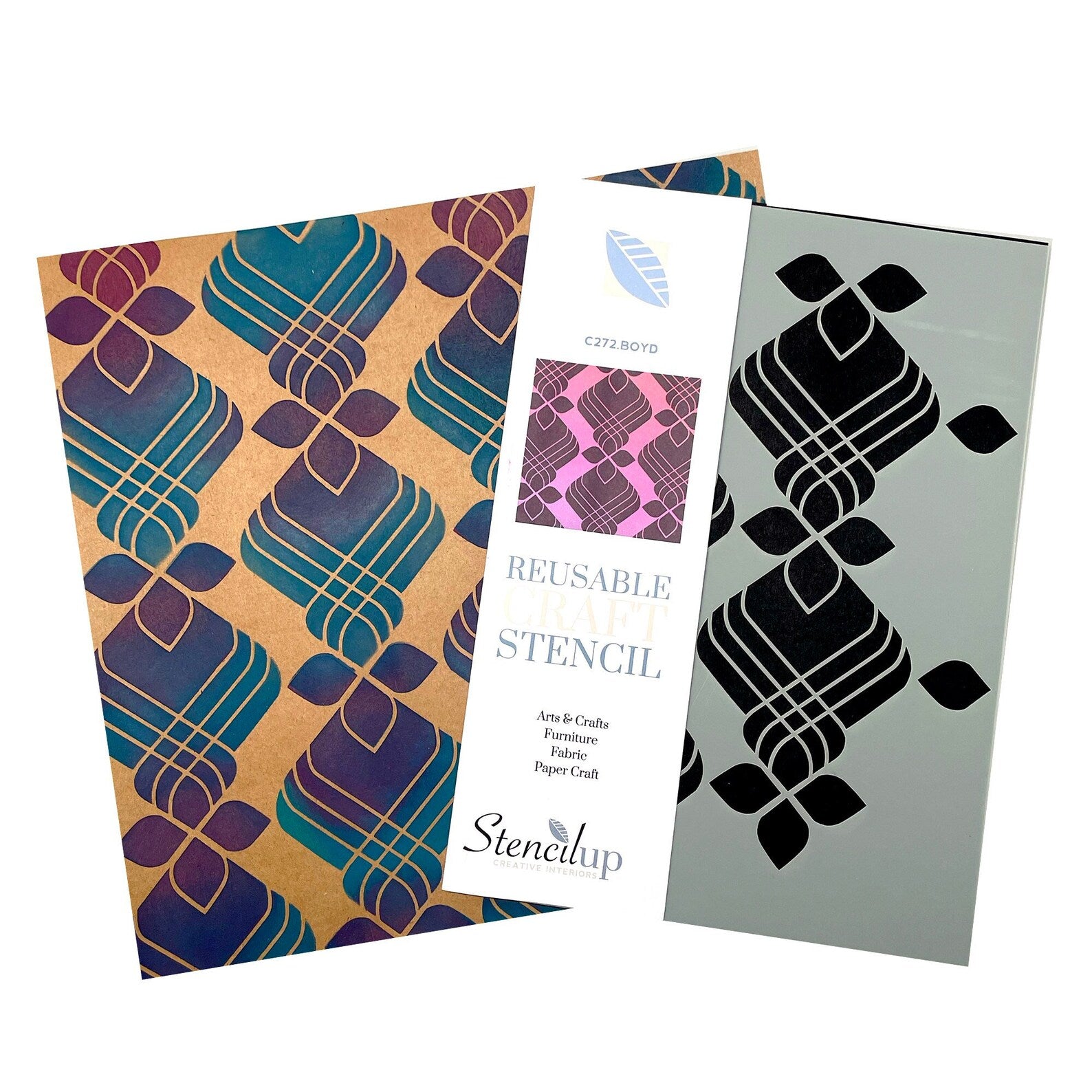 Boyd is a mid Century Atomic geometric painting stencil. Reusable stencil for craft in a retro pattern. This geometric pattern furniture stencil is easy-to-use and is reusable. Perfect for up cycling furniture. The self adhesive stencils have a low-tack peel-off backing that eliminates the need for spray adhesive or masking tape. All parts of the stencil are held in place minimising bleeding and resulting in sharper lines. The backing is waterproof so can be cleaned, and once dry will become tacky once again.