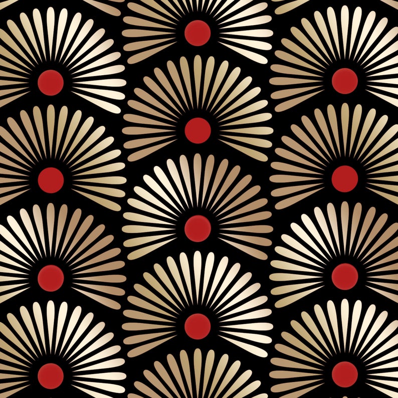 Oriental fans art deco chinoiserie stencil