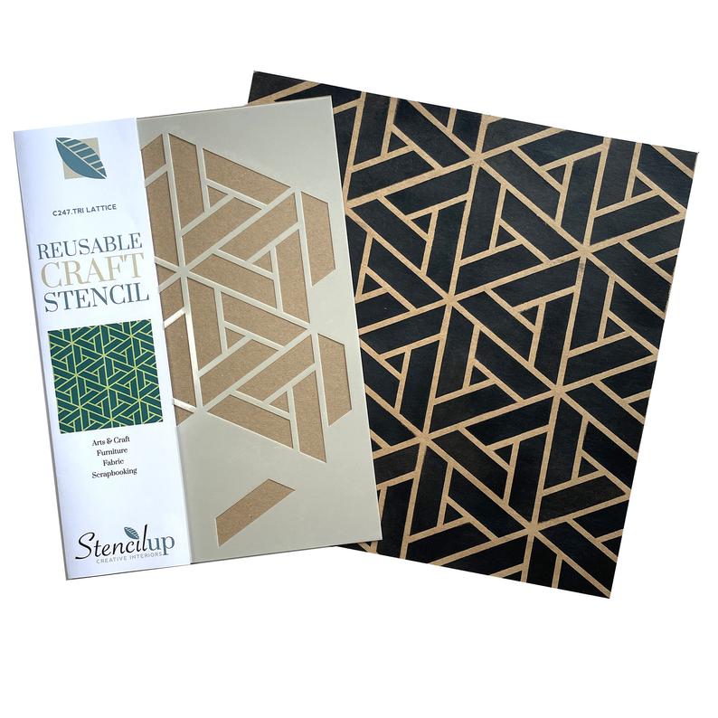 TRI LATTICE furniture stencil for painting, oriental pattern. Reusable painting stencil geometric design in a Japanese pattern. Ideal for furniture painting too create a seamless repeating pattern.