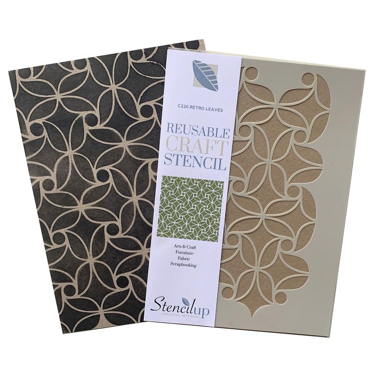 Retro Leaves pattern, repeating design for fabric painting and for furniture. Craft stencils by Stencil Up are ideal for furniture painting. This geometric stencil in a retro leaf pattern is easy-to-use.