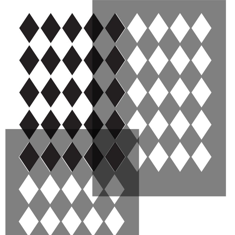 Harlequin pattern stencil. Diamond design stencil for painting furniture and fabric. This craft stencils is easy to use, reusable and easy to clean between uses. Create a geometric harlequin pattern with this repeating stencil.