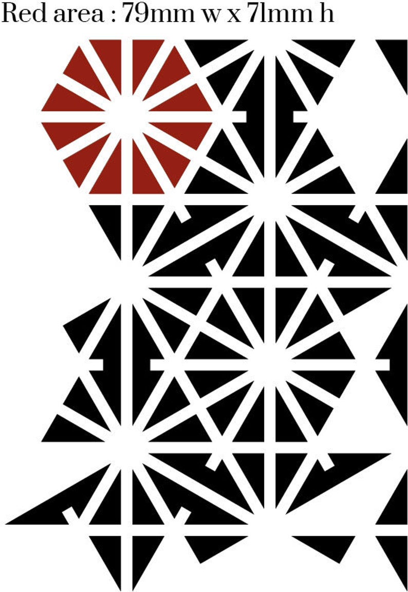 - Follow the registration photo for a seamless pattern.The sizes are for the overall design, the stencil sheet will be larger than this. Please refer to the sizing picture to determine the correct size for your project.