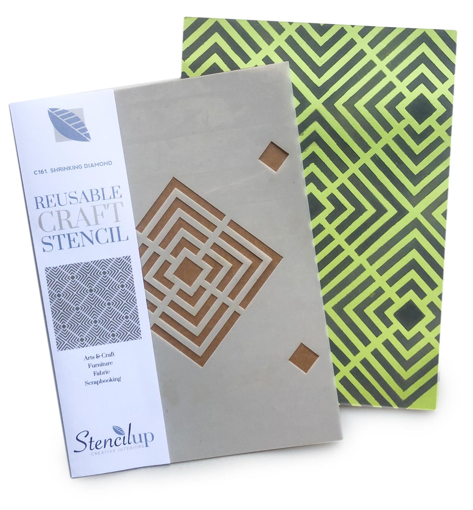 Shrinking Diamond is a geometric design by Stencil Up. This craft stencil is easy-to-use to create a geometric pattern. Our furniture stencils are ideal for up-cycling and the optical pattern is very striking.- A4 sheet