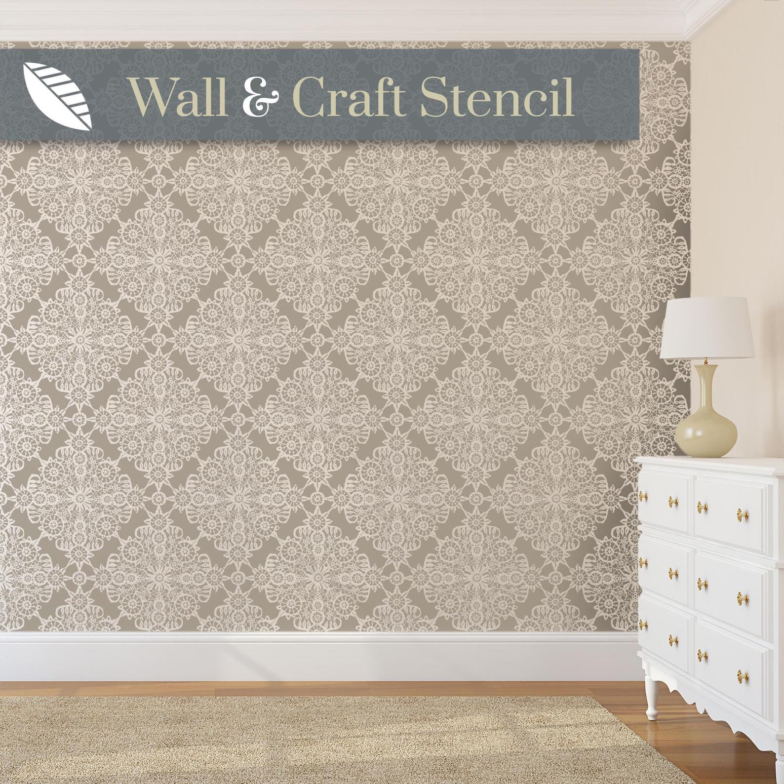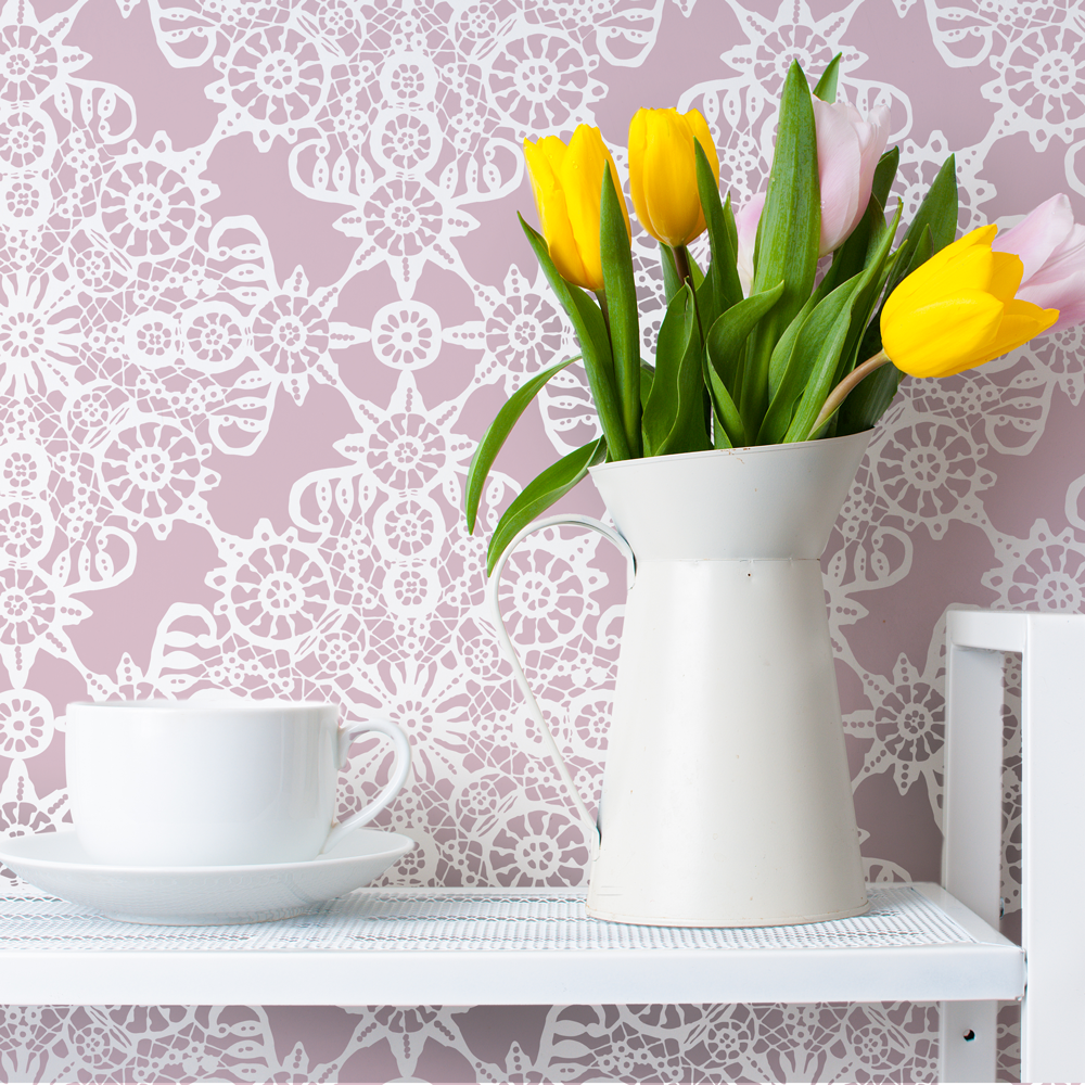 A beautiful traditional wall stencil pattern, based on a piece of vintage Irish lace from approximately 1860. This is a very forgiving design so is easy to line-up to create and all-over lace wall covering. This large wall stencil for painting can also be used as a craft stencil. Our stencils for walls are reusable and durable so you can use them many times to create feature walls and accessories such as cushions and furniture.