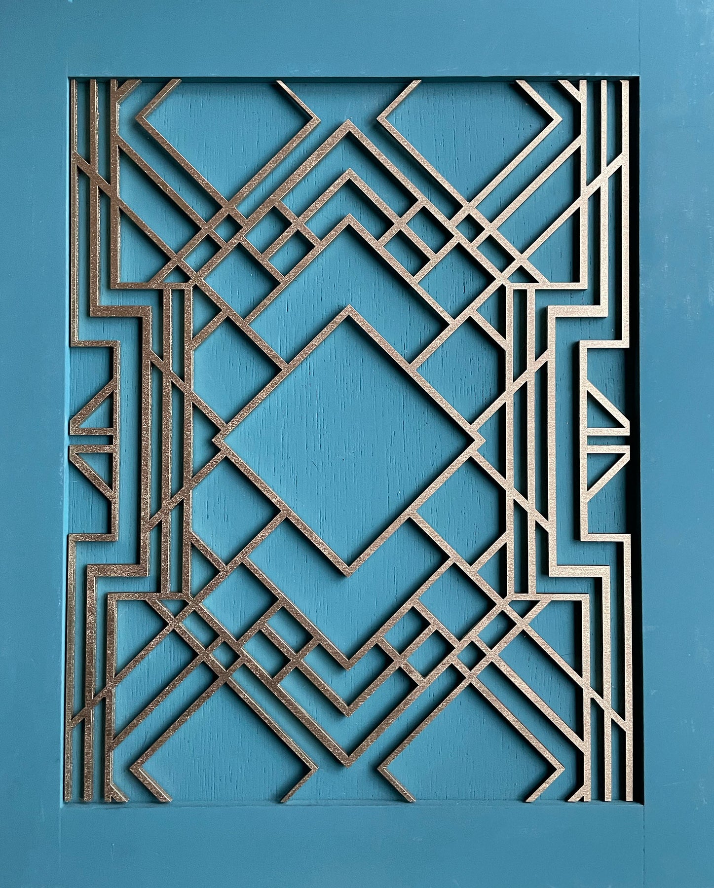 The Deco Trellis stencil is now available as a self-adhesive wooden onlay. Simply paint in your required colour, peel off the back and stick to your surface.
