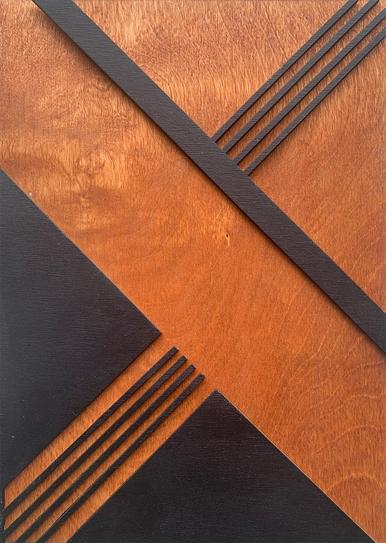 This easy to use adhesive wood panel will give a geometric 3d edge to your furniture. This panel can be finished in many ways, paint, stain, gilding. It can be supplied as a single square panel, or as a 2-part set for your to space as needed.