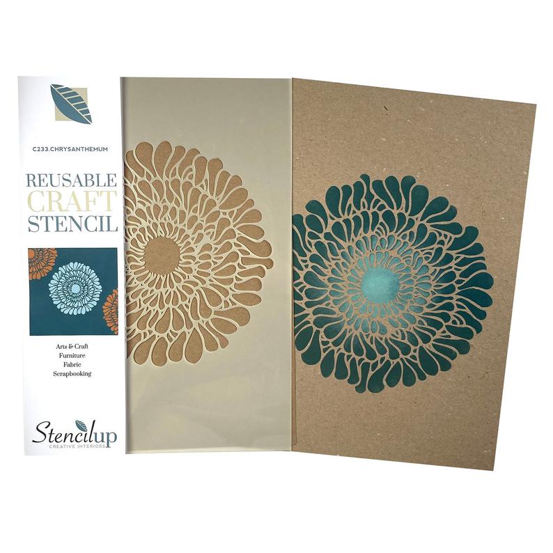 Chrysanthemum stencil for furniture painting or creating floral fabric and other crafts. Craft stencils by StencilUp are easy to use The plastic stencil is reusable and easy to clean. See our store for other floral stencils.