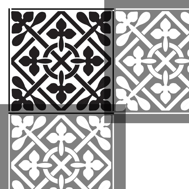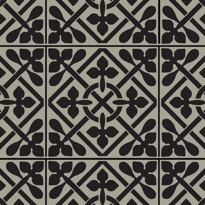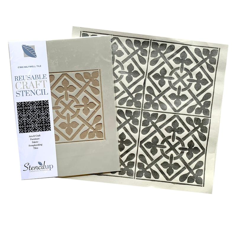 Holywell stencil for painting tiles is a Minton Victorian tile design based on a tile at St Albans Cathedral in Hertfordshire. Tile design for painting. Use as a floor stencil tile or paint your patio. This craft stencil for furniture and floors is easy-to-use and can be used many times. Choose 'with grout' if you wish to create a tile effect on a flat surface. If you are painting on to existing tiles, choose the standard option.